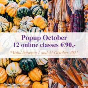 The purchased 12 online classes are valid between 1 and 31 October 2021. Unused classes are null and void after 31 October 2021.